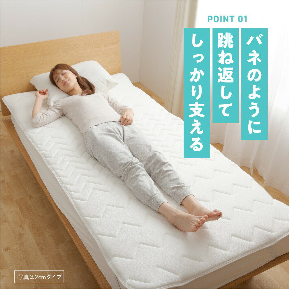 ■特長 敷くだけで寝心地が変わる!縦型に成形されたクッション綿が体圧をサポート、薄くてもしっかりした寝心地に。