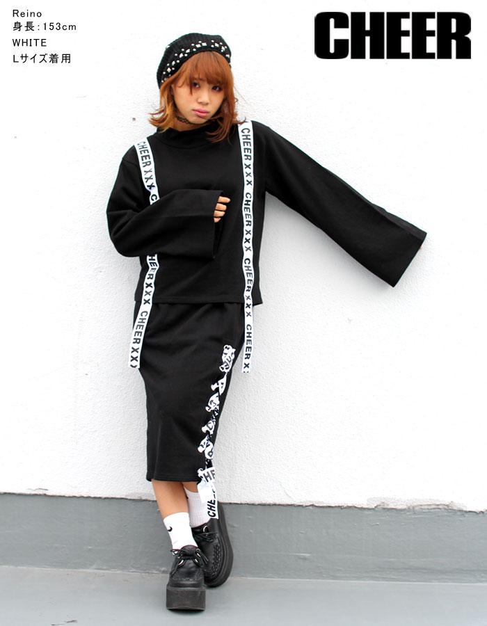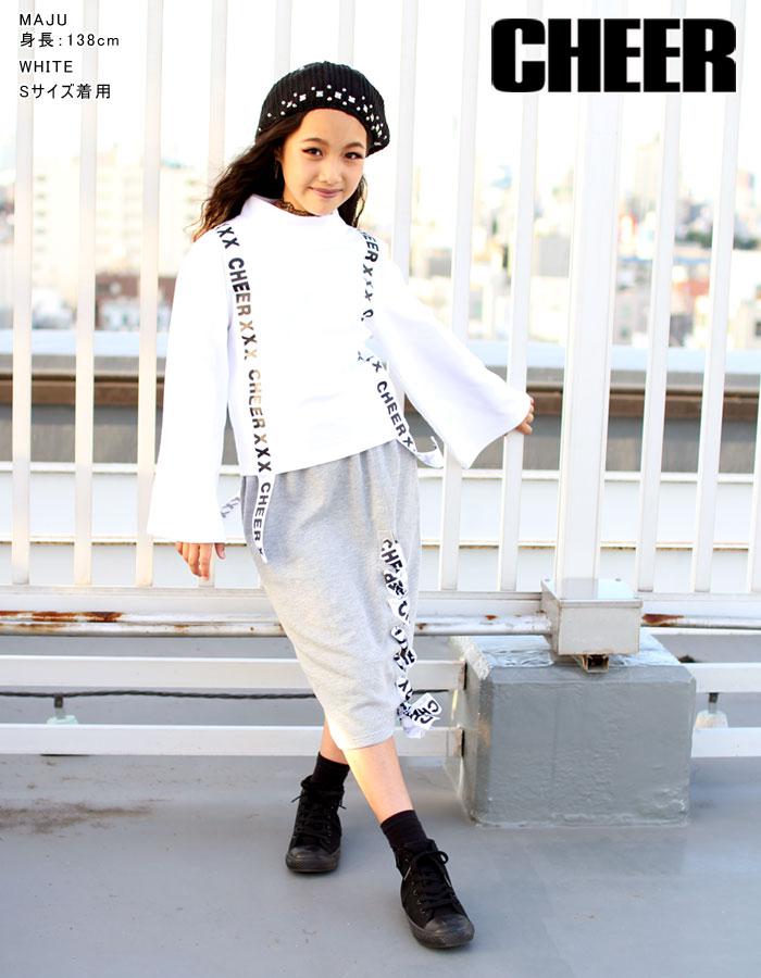 メール便可 cheer Tシャツ ロンT【CHEER】[チアー] デザイン ハイネック フレアスリーブ ロンTEE【ロゴテープ モノトーン タートルトップス ダンスふくや キッズ ダンス 衣装 韓国 子供服 おしゃれ かわいい SALE セール】