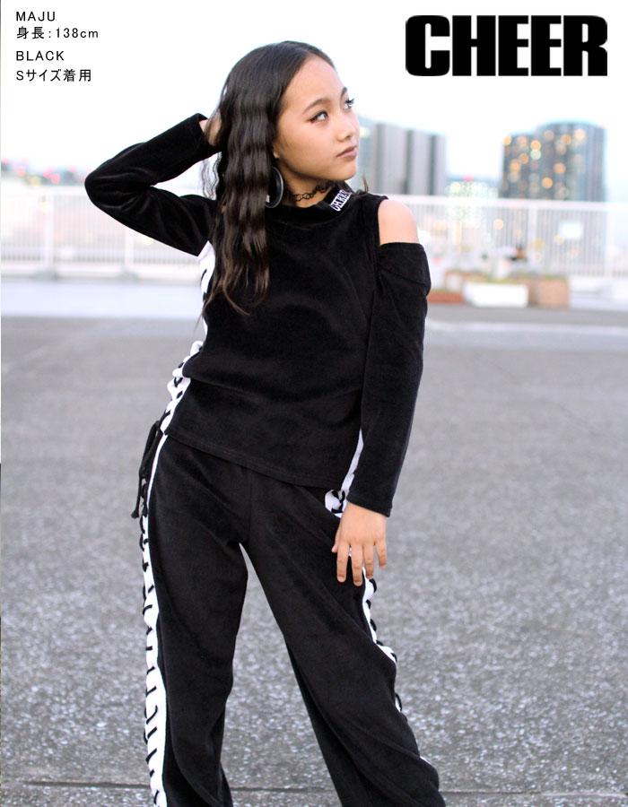 ベロア 長袖 トップス【CHEER】[チアー] サイド レースアップ ベロア トップス【ダンスふくや ホルターネック ハイネック 肩だし オフショルダー ロングスリーブ モノトーン レディース キッズ ダンス 衣装 韓国 子供服 おしゃれ かわいい SALE セール】