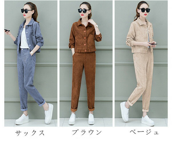 送料無料新作 レディース セットアップ 上下セット パンツスーツ スーツセット 2点セット おしゃれ レディースファッション コーデュロイ カジュアルスーツ ベージュ サックス イエロー大きいサイズ おしゃれスーツ 秋服ママ カジュアルスーツ s〜2XL パンツスーツ レディース フォーマル スーツ セットアップ 2点セット 卒大きいサイズ セット ママ 【在庫がある場合】5−8日営業日以内に発送します。